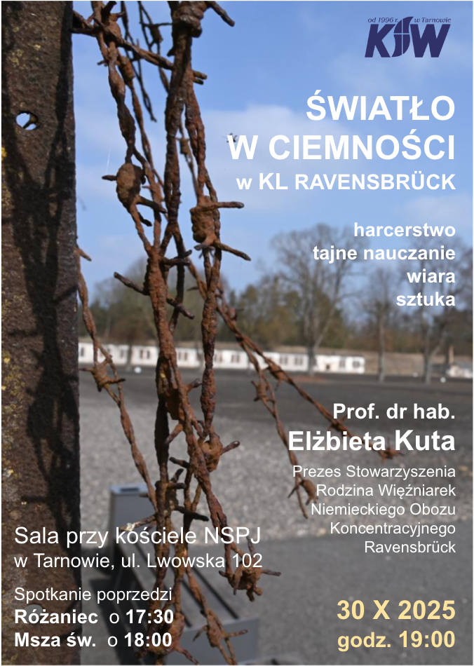Katolickie Stowarzyszenie Wychowawców oddział w Tarnowie zaprasza na spotkanie z Elżbietą Kutą, córką tarnowianki Jadwigi Kuty, więźniarki KL Ravensbrück. Temat spotkania: ruch oporu kobiet w niemieckim obozie koncentracyjnym Ravensbrück – „Światło w ciemności”.