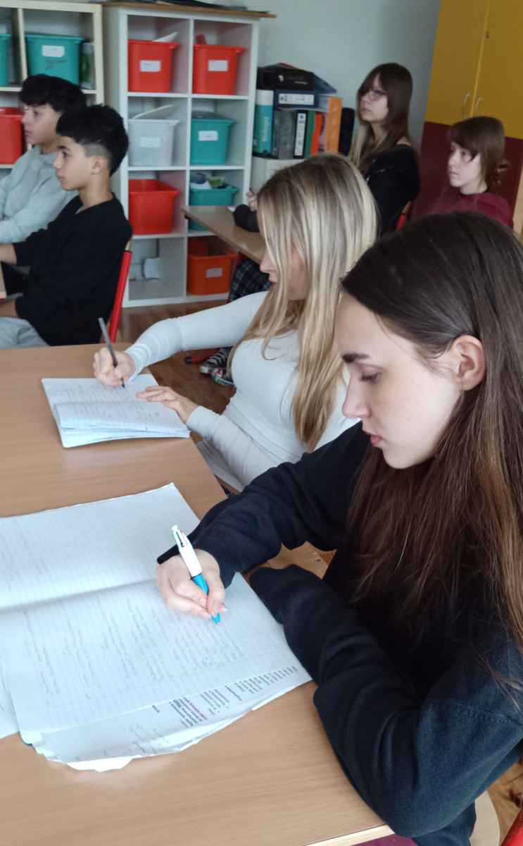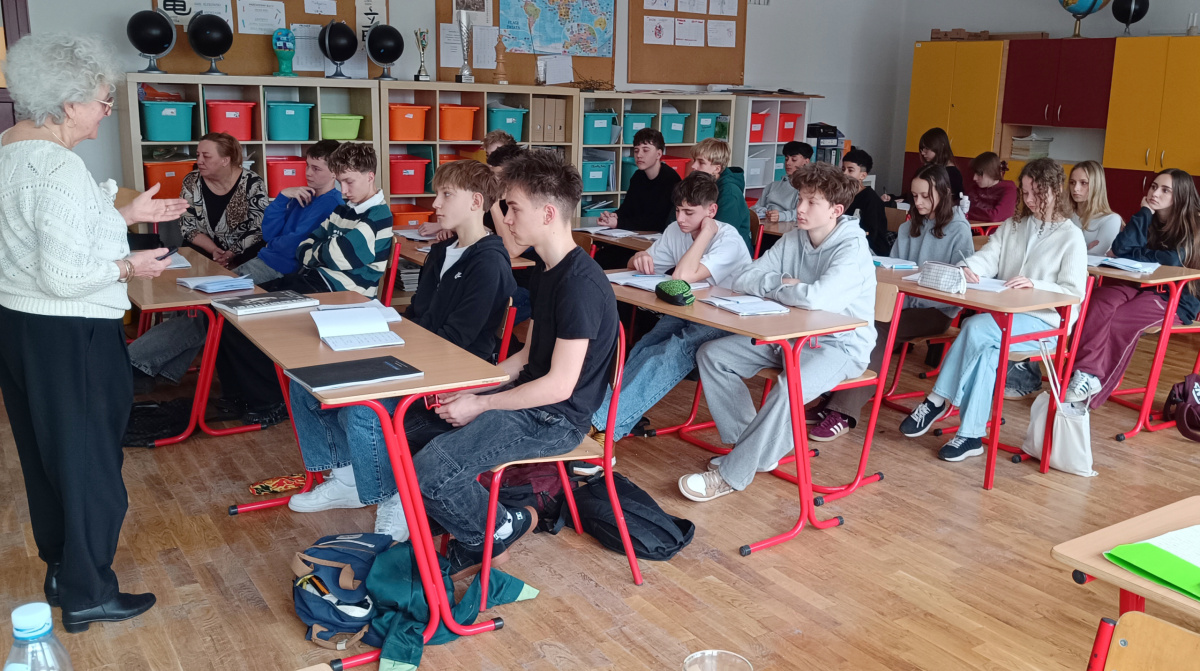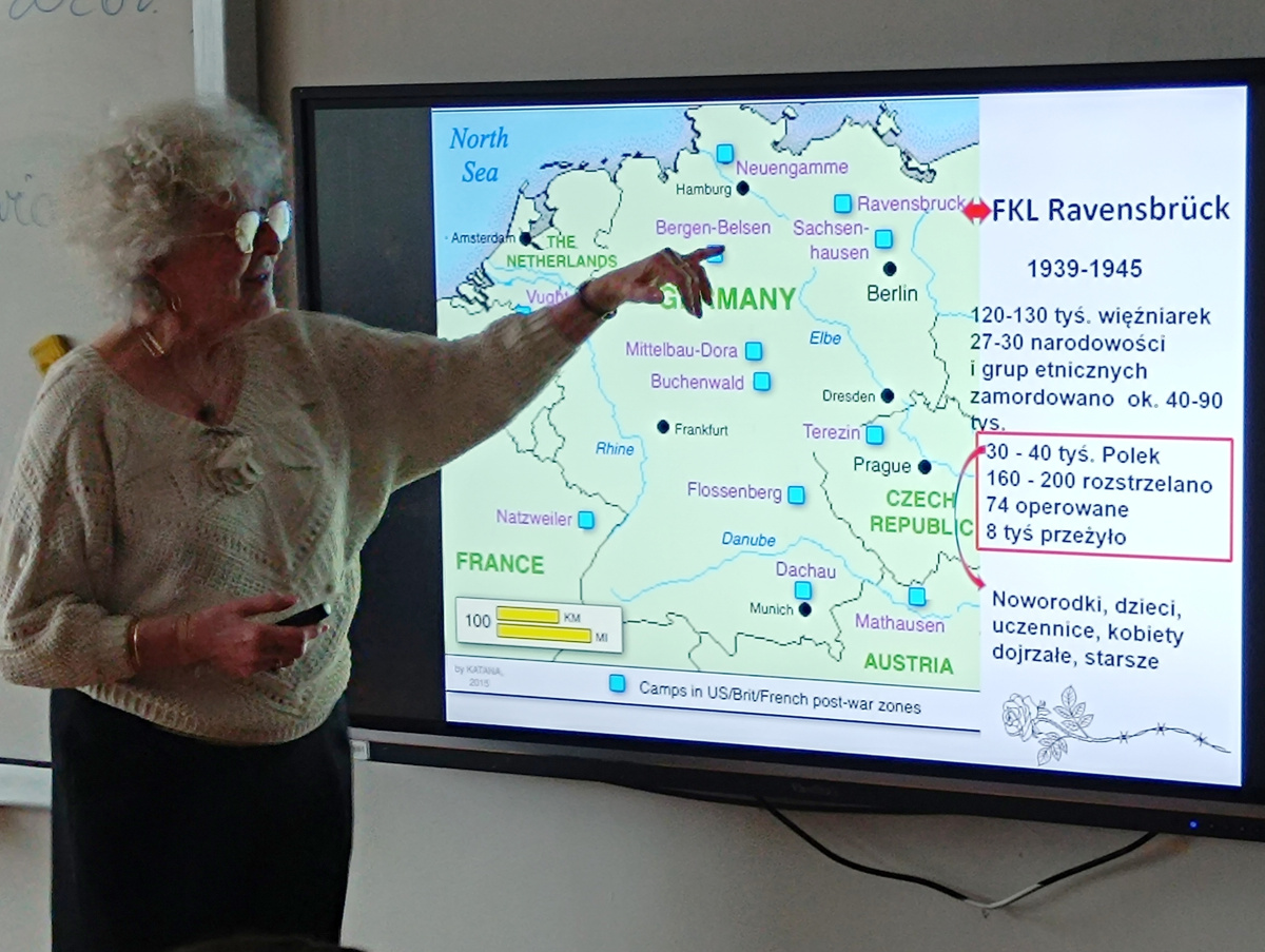 Stałam naprzeciw uczennic i uczniów niepewna – patrzyliśmy na siebie – co Oni myśleli nie wiem. Ja z niepokojem patrzyłam na Ich twarze niektóre poważne, inne z lekkim uśmiechem, z zaciekawieniem. Ja – niepewna jak opowiedzieć współczesnej młodzieży, oswojonej z okrucieństwem w oglądanych filmach, z powszechnym hejtem, o niemieckim obozie koncentracyjnym dla kobiet Ravensbrück?