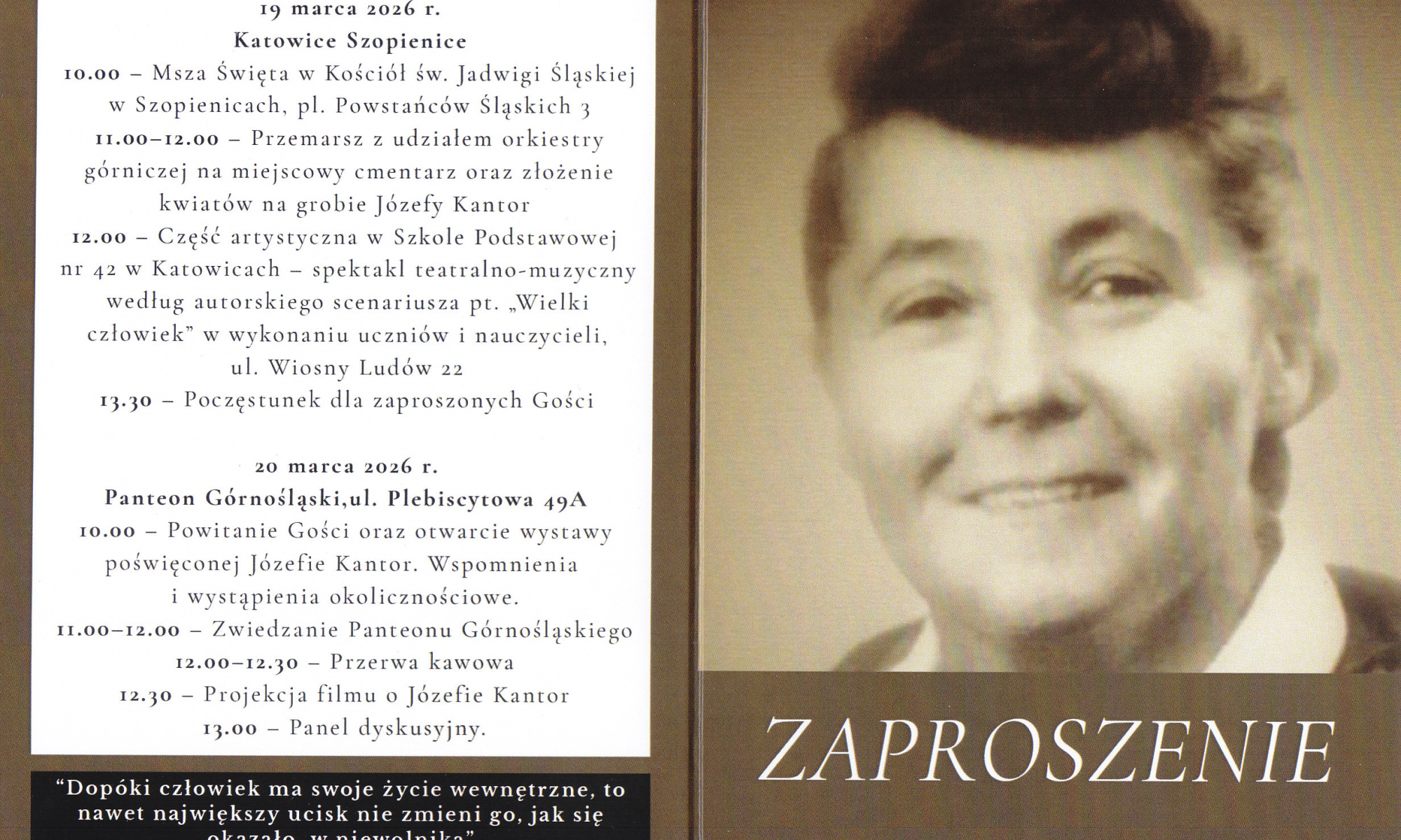 Stowarzyszenie jest współorganizatorem tego wydarzenia. Zapraszamy do uczestniczenia w upamiętnieniu śp. Józefy Kantor.